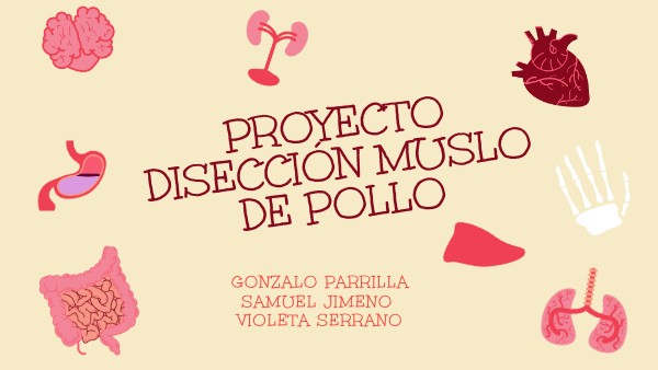 En clase de anatomía hemos realizado una disección de un muslo de pollo para poder observar todos los tejidos posibles en él. Hemos realizado una presentación para explicar los siguientes puntos