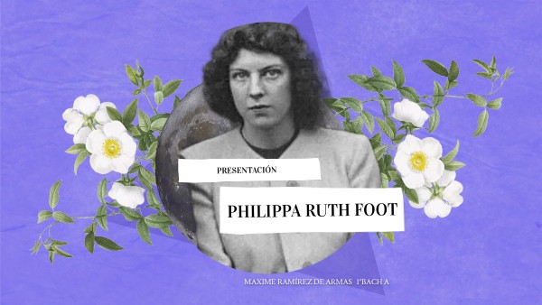 Philippa Ruth Foot fue una filósofa británica que nació el 3 de octubre de 1920 y falleció el 3 de octubre de 2010. Philippa es principalmente reconocida por ser una de las fundadoras de la ética de las virtudes contemporáneas. Fue educada en Somerville College, Oxford, 1939–1942, donde estudió Filosofía, Política y Economía. Para desarrollar su pensamiento, se inspiró en la ética aristotélica e influencia de Wittgenstein.