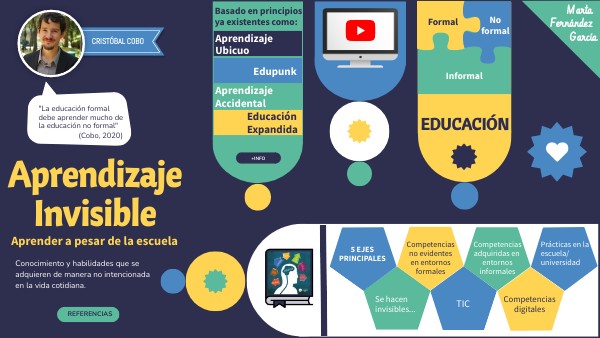 - TEDx Talks. (27 junio, 2010). TEDxLaguna - Cristóbal Cobo - Aprendizaje invisible: ¿Cómo aprender a pesar de la escuela? [Archivo de vídeo]. Youtube. https://youtu.be/9E_BH00dkJk?si=zv_cW7aU1mYtnU0y