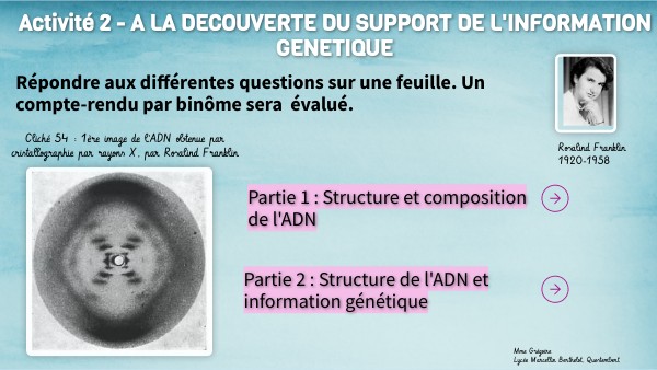 Activité 2 - A LA DECOUVERTE DU SUPPORT DE L'INFORMATION GENETIQUE
