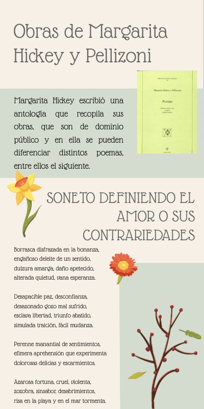 Margarita Hickey escribió una antología que recopila sus obras, que son de dominio público y en ella se pueden diferenciar distintos poemas, entre ellos el siguiente.