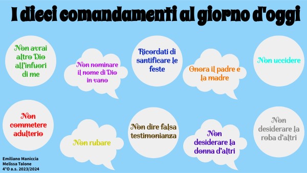 Il reale secondo comandamento recita: "Non nominare il nome di Dio invano", oggi però, purtroppo la maggior parte delle persone scrivono o dicono bestemmie e parolecce, anche per le piccole cose, al punto tale che sono state pubblicate alcune canzoni immorali.