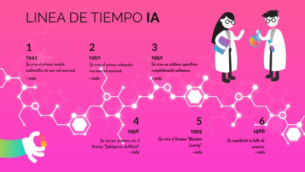 En 1950, 2 cerebritos de Hardvard (Dean Edmonds y Marvin Minsky) crean un oredenador con una red neuronal. Además, ese mismo año, Alan Turing publica un test, conocido como "Test de Turing", test que hoy en dia se sigue usando para valorar las IAs.