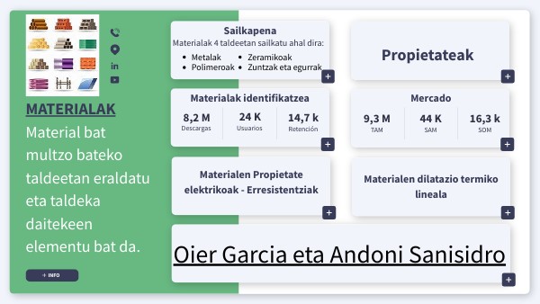 - Erresistibitatea ρ : Korronte elektrikoa igarotzean material bat aurkezten duen oposizioaren neurria da. Ω⋅mm2/m -tan neurtu ohi da.