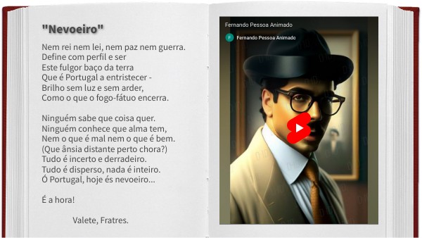 Nem rei nem lei, nem paz nem guerra. Define com perfil e ser Este fulgor baço da terra Que é Portugal a entristecer - Brilho sem luz e sem arder, Como o que o fogo-fátuo encerra. Ninguém sabe que coisa quer. Ninguém conhece que alma tem, Nem o que é mal nem o que é bem. (Que ânsia distante perto chora?) Tudo é incerto e derradeiro. Tudo é disperso, nada é inteiro. Ó Portugal, hoje és nevoeiro... É a hora! Valete, Fratres.