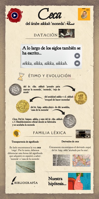 Derivados de ceca Únicamente encontramos el derivado cequí, del ár. hisp. sikki 'acuñado por la ceca'.