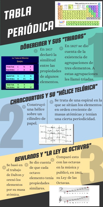 Se trata de una espiral en la que se sitúan los elementos en orden creciente de masas atómicas y tenían una cierta periodicidad.