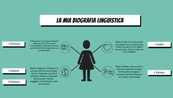 Metto l'arabo nel cuore perché sono algerinna e mi piace parlo l'arabo ma parlo che in Algeria quando parto. Parlo l'arabo con il mia famiglia.
