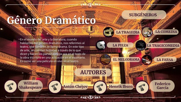 En el mundo del arte y la literatura, cuando hablamos del género dramático, nos referimos al teatro, que también se llama drama. En este tipo de arte, se cuentan historias a través de lo que dicen y hacen los personajes, ya sea en el texto de la obra escrita o en una actuación en el escenario. Es como ver una película en vivo en el teatro.