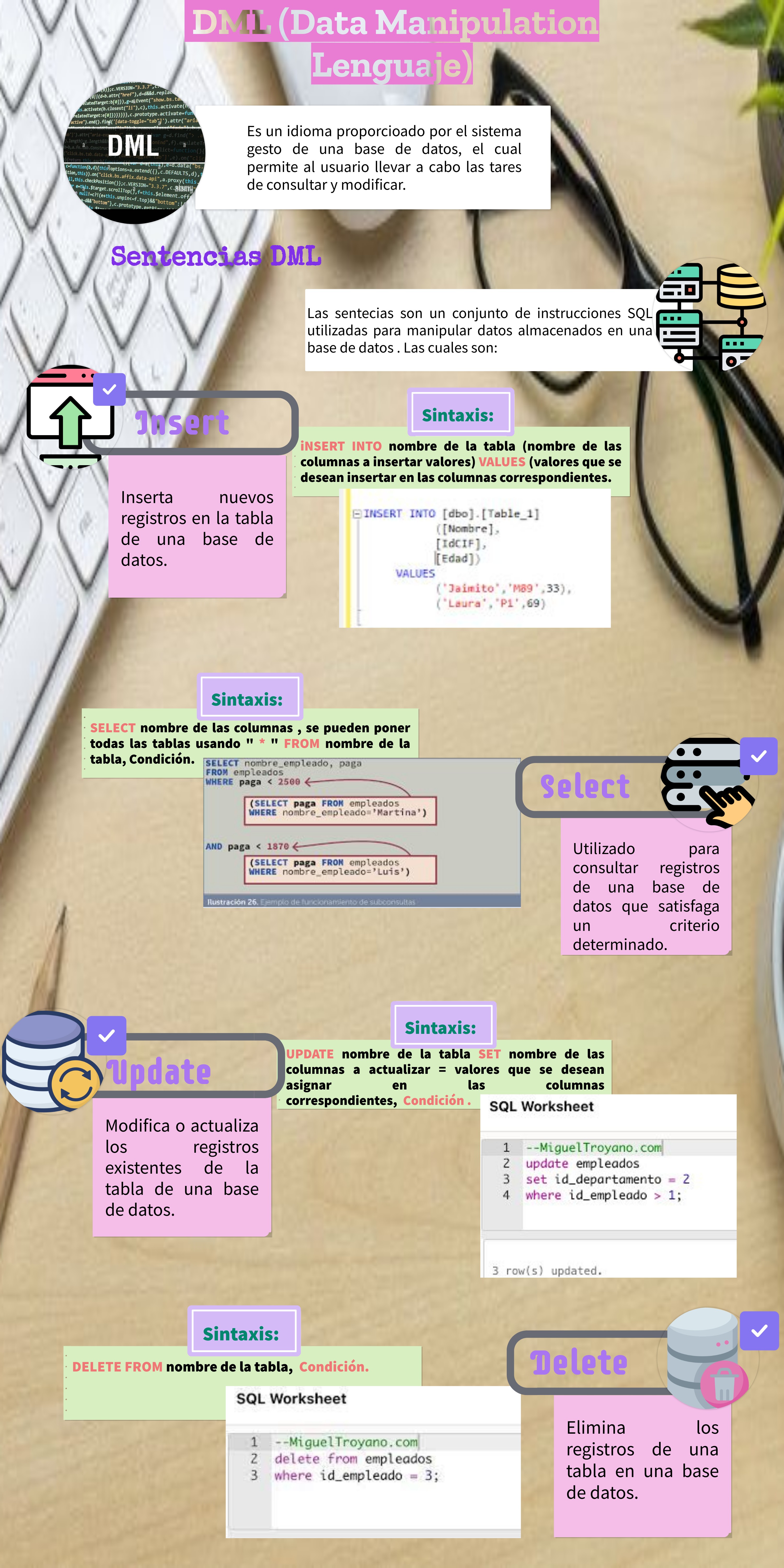 Las sentecias son un conjunto de instrucciones SQL utilizadas para manipular datos almacenados en una base de datos . Las cuales son: