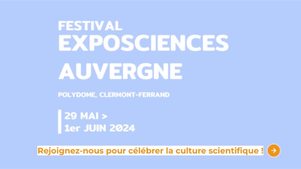 Bienvenue au cœur du festival Exposciences, du 29 mai au 1er juin 2024 à Clermont-Ferrand. Un évènement de rencontres entre des groupes de jeunes sur leurs stands, le public et les professionnels. En tant que professionnels de la médiation et/ou membres de la communauté scientifique et technique, êtes-vous prêts à embarquer dans cette aventure ?