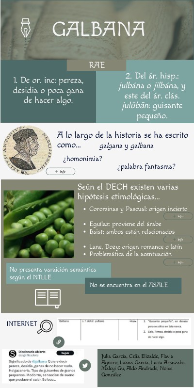 El primer registro del término se hizo en 1492 en la Gramática de la lengua española de Antonio de Nebrija, donde se recogió como galgana. Es Covarrubias el que citando al anterior registra el término por primera vez como galbana.