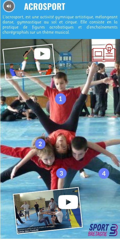 L’acrosport, est une activité gymnique artistique, mélangeant danse, gymnastique au sol et cirque. Elle consiste en la pratique de figures acrobatiques et d’enchaînements chorégraphiés sur un thème musical.