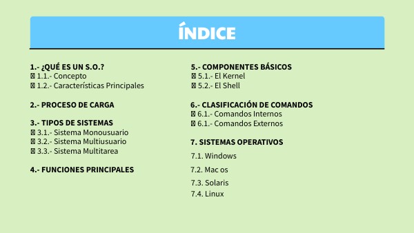 1.- ¿QUÉ ES UN S.O.? 1.1.- Concepto 1.2.- Características Principales