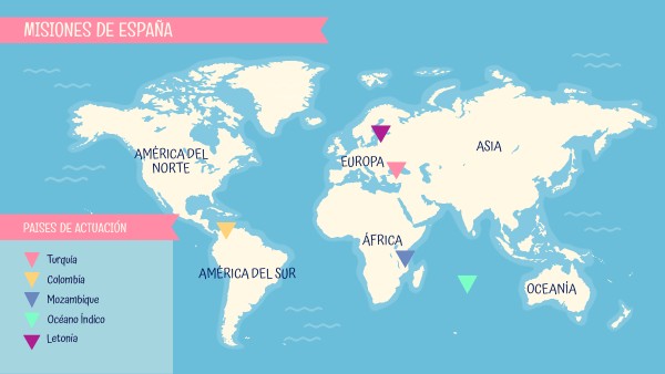 Agosto-2012 España apoya, bajo el mandato de Naciones Unidas, el cumplimiento de los acuerdos de paz en Colombia mediante la vigilancia y verificación del cese del fuego y de las hostilidades, así como la dejación de las armas.