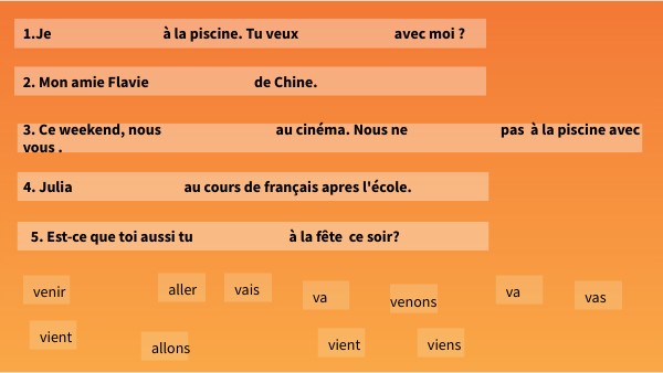 3. Ce weekend, nous au cinéma. Nous ne pas à la piscine avec vous .