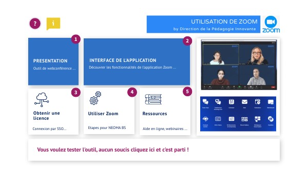 Zoom est un outil de webconférence qui permet de faire des réunions et d'animer des classes virtuelles.