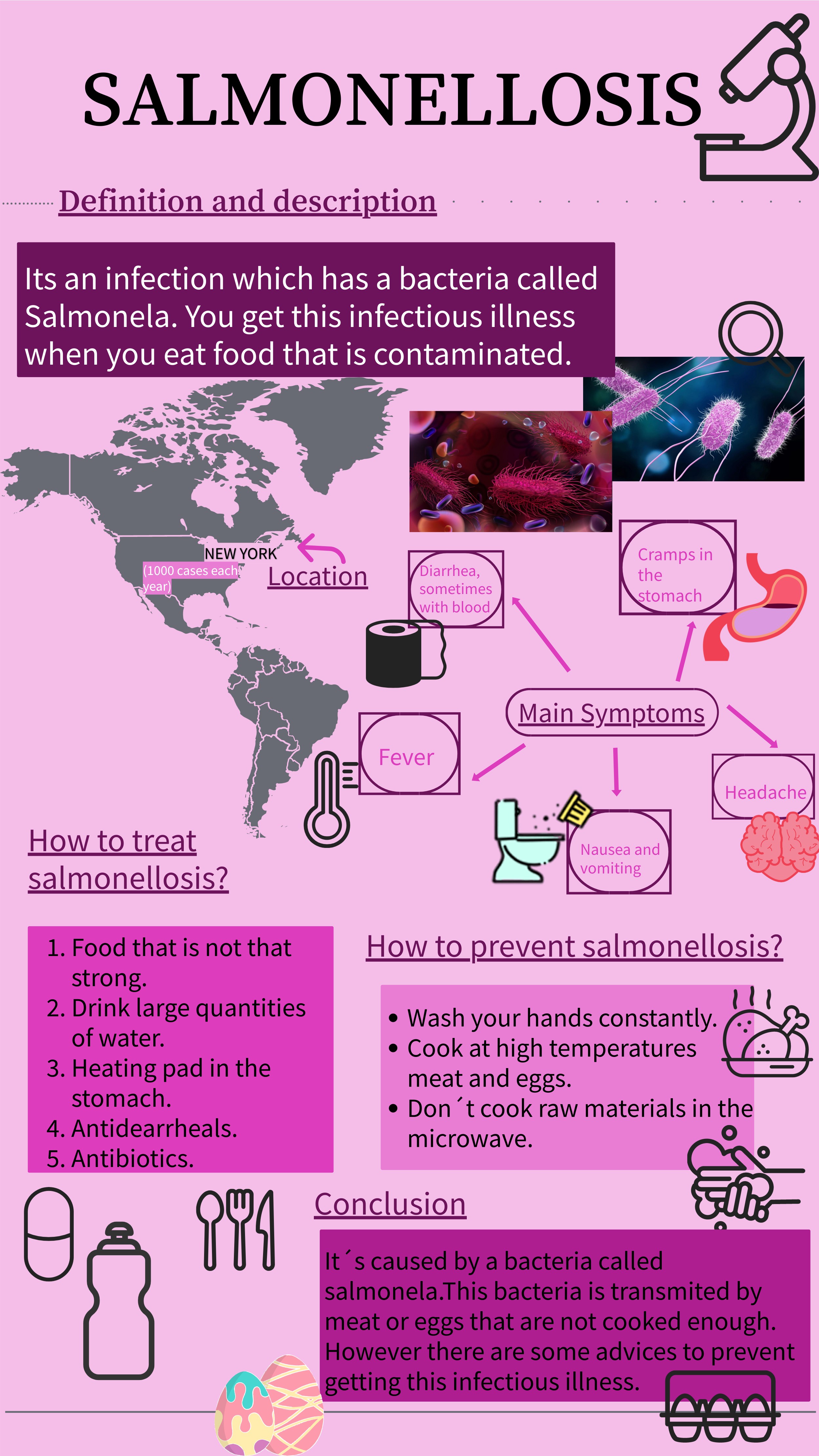 It´s caused by a bacteria called salmonela.This bacteria is transmited by meat or eggs that are not cooked enough. However there are some advices to prevent getting this infectious illness.