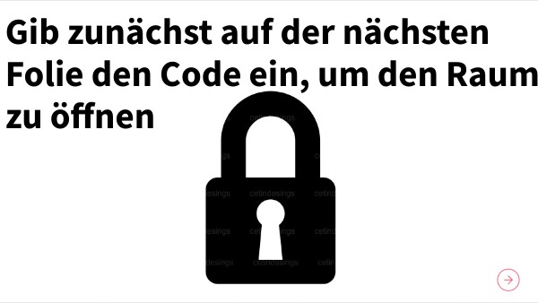 Gib zunächst auf der nächsten Folie den Code ein, um den Raum zu öffnen