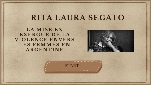 https://www.babelio.com/auteur/Rita-Laura-Segato/301044 https://philomel.hypotheses.org/8856 https://scienceetbiencommun.pressbooks.pub/colonialite/chapter/segato-rita-laura/ https://www.lemonde.fr/international/article/2020/01/17/rita-laura-segato-nous-voyons-en-amerique-latine-l-emergence-d-une-politisation-feminine_6026239_3210.html https://www.diplomatie.gouv.fr/fr/dossiers-pays/argentine/presentation-de-l-argentine/ https://encartes.mx/fr/curley-trayectoria-decolonizacion-america-latina/https://dubasque.org/10-recommandations-de-rita-segato-pour-lutter-contre-les-violences-sexuelles/ http://cah.wnks.uw.edu.pl/person/rita-segato/