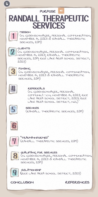 Clients(N. Gudenschwager, personal communication, November 14, 2023; Randall Therapeutic Services, 2019; Rice Lake Area School District, 2023)