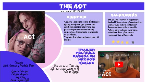 The Act, una serie que te enganchara desde el Primer minuto ¿Es realmente un Drama? ¿Una historia de Misterio?.Te envolverá una historia increíble, Actores Sorprendentes y una trama inolvidable. Pero ¿Qué ocurre realmente? Vela y Descúbrelo.