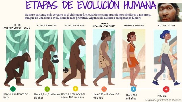 Nuestro pariente más cercano es el chimpancé, el cual tiene comportamientos similares a nosotros, aunque de una forma evolucionada más primitiva. Algunos de nuestros antepasados fueron: