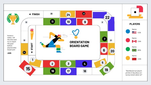 hoose a token, roll the dice and try to reach the goal before anyone else. Good luck!