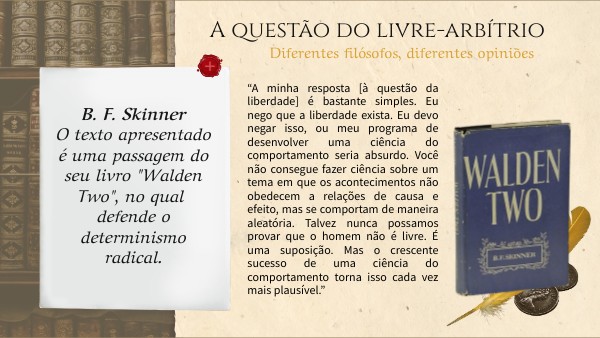 B. F. SkinnerO texto apresentado é uma passagem do seu livro "Walden Two", no qual defende o determinismo radical.