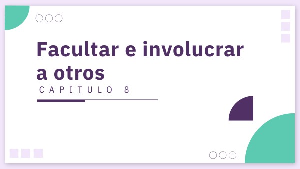 Es importante involucrar a otros pero tomando en cuenta que el trabajo se haga bien y se encarguen de sus propios proyectos. Que no responsabilice a otros de sus responsabilidades, hacerlo sentir empoderado y dueño de sus propios problemas o tareas, hay que dejar que ellos mismos busquen alternativas y soluciones a a sus propios problemas y dificultades, insistir en que ellos pueden hacerlo sin ayuda de alguien superior o simplemente de alguien más, de esta manera se le da la responsabilidad completa y así el facultamiento o habilidades de las personas aumentarán si proponen sus propias soluciones o recomendaciones, se les puede plantear distintas preguntas en forma de hacerles ver que ellos pueden resolver y pensar en alternativas posibles.