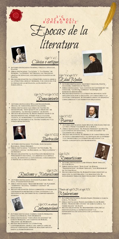 - Hechos relevantes: La literatura clásica abarca la literatura griega y romana, y es conocida por su énfasis en la mitología, la filosofía y la poesía épica.