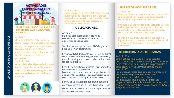 Artículo 120están obligados al pago del impuesto, las personas físicas que perciban ingresos derivados de la realización de actividades empresariales o de la prestación de servicios profesionales. artículo 103 las personas físicas que obtengan ingresos por actividades empresariales o servicios profesionales, tendrán derecho a: Los gastos, las inversiones, los intereses pagados derivados de la actividad empresarial o servicio profesional, las cuotas pagadas al IMSS a cargo de patrones etc.