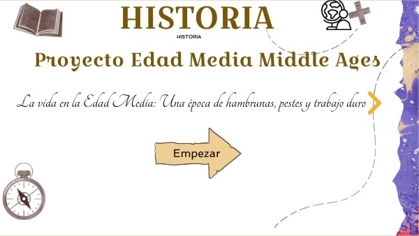 En este proyecto pretendemos que el alumno sea capaz de asimilar los contenidos de la unidad didáctica La Edad Media de los siglos XII y XIII de una forma más divertida y amena. In this project we aim for the student to be able to assimilate the contents of the teaching unit The Middle Ages of the 12th and 13th centuries in a more fun and enjoyable way.