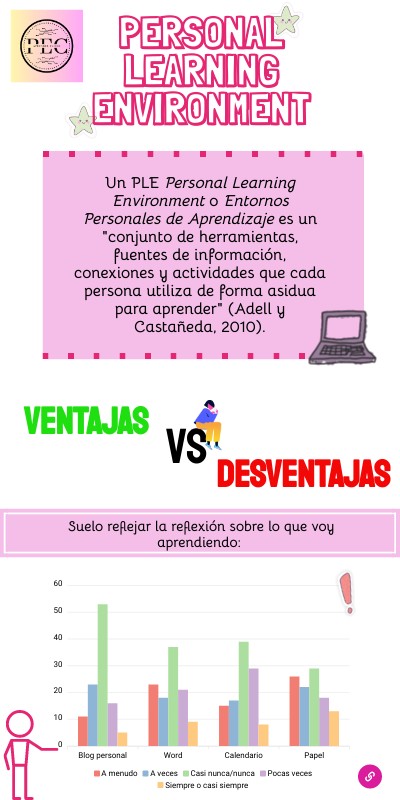 Un PLE Personal Learning Environment o Entornos Personales de Aprendizaje es un "conjunto de herramientas, fuentes de información, conexiones y actividades que cada persona utiliza de forma asidua para aprender" (Adell y Castañeda, 2010).