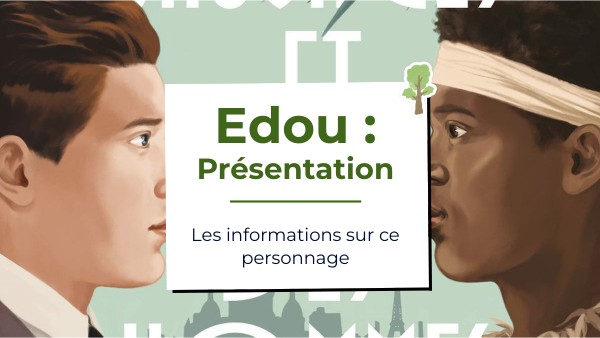 physique: blanc de peauorigine : français habitat : immeuble Boulevard De Port Royal, 5eme arrondissemant de Paris Famille : Edouard et Suzanne,ses parents une soeur ainée Irène et une plus jeune soeur Marie-Andrée 6ans Age : 18ans Travail : étudie en Droit et éconnomie à l'université caractère : manque de confiance,ne se sent pas méritant milieu social : bourgeois possède la draperie Noblécourt Rôle : Victor découvre la vérité sur l'exposition et décide d'emmener Edou visiter Paris, puis dans un spectacle pour dévoiler la vérité il se déguise en indigène pour faire connaître le sort des noirs.
