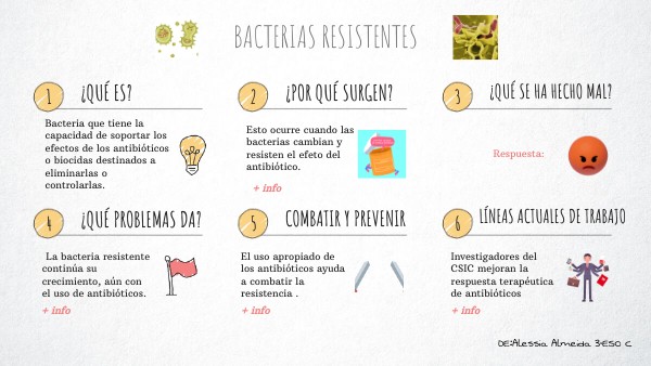 Las bacterias resistentes pueden seguir creciendo y multiplicarse. Cada vez que toma exceso de antibióticos, existe un riesgo que la bacteria se vuelva resistente. Las infecciones resistentes pueden ser complejas y, en ocasiones, imposibles de tratar.