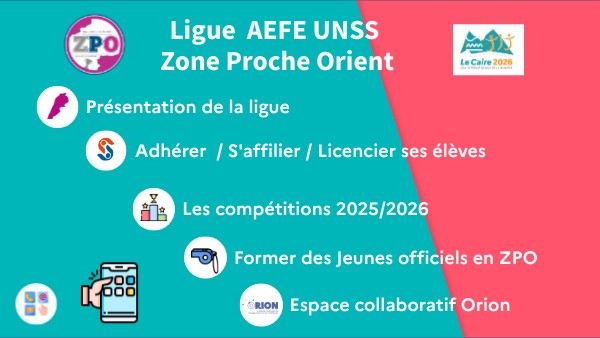 Les établissements qui souhaitent participer aux événements sportifs et culturels proposés par la ligue AEFE UNSS de la Zone Proche-Orient doivent : ==> Adhérer à la ligue AEFE UNSS ZPO ==> S'affilier à l'UNSS (pour les compétitions en présentiel) ==> Licencer ses élèves sur Opuss ==> Extraire des licences via Opuss