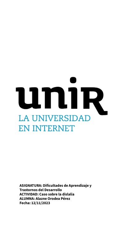 ASIGNATURA: Dificultades de Aprendizaje y Trastornos del Desarrollo ACTIVIDAD: Caso sobre la dislaliaALUMNA: Alazne Orodea Pérez Fecha: 12/11/2023