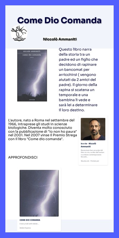 Questo libro narra della storia tra un padre ed un figlio che decidono di rapinare un bancomat per arricchirsi ( vengono aiutati da 2 amici del padre). Il giorno della rapina si scatena un temporale e una bambina li vede e sarà lei a determinare il loro destino.