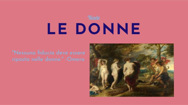 L’Iliade è un poema epico scritto da Omero in cui nella società prevalgono gli uomini, ma nonostante questo predominio, anche le donne hanno la loro parte. I personaggi femminili, sono descritti come donne subordinate all'uomo...