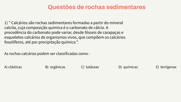 2 questões rochas sedimentares biogeo