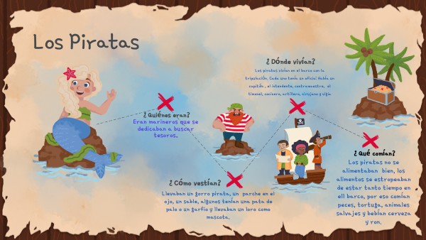 ¿Dónde vivían?Los piratas vivían en el barco con la tripulación. Cada uno tenía un oficio: Había un capitán , el intendente, contramaestre, el timonel, cocinero, artillero, cirujano y vigia