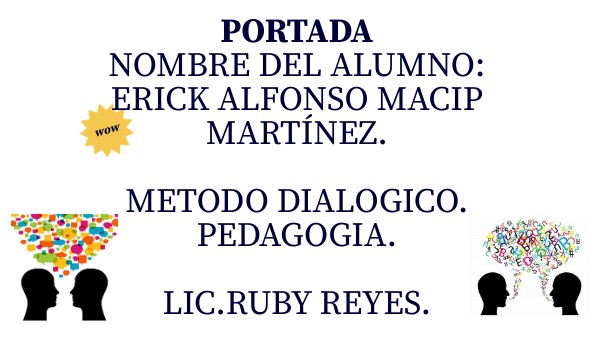 PortadaNombre del alumno: Erick Alfonso Macip Martínez. METODO DIALOGICO. PEDAGOGIA. lic.ruby reyes.