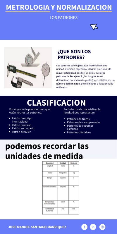 Los patrones son objetos que materializan una unidad o tamaño específico. Máxima precisión y la mayor estabilidad posible. Es decir, nuestros patrones de Por ejemplo, las longitudes se determinan por metros (o yardas) y en el taller por un número determinado. de milímetros o fracciones de milímetro.