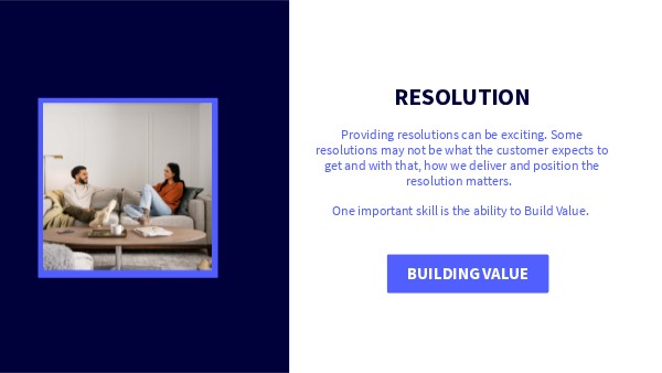 Providing resolutions can be exciting. Some resolutions may not be what the customer expects to get and with that, how we deliver and position the resolution matters. One important skill is the ability to Build Value.