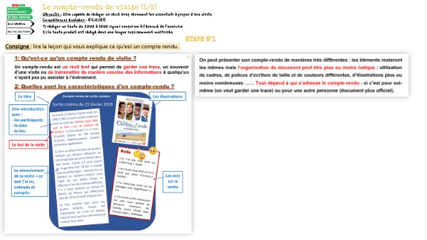 Consigne : lire la leçon qui vous explique ce qu'est un compte rendu.