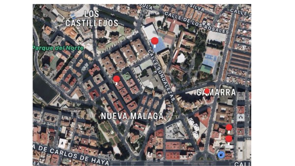 - Infraestructura:En estas instalaciones encontramos 2 pistas de fútbol sala, 2 pistas de minibasket, 1 pista de basket y un pabellón deportivo donde se hace multideporte y se colocan las dos pistas de voleibol. Además, encontramos una pista externa de voleibol y otra pista de basket detrás del pabellón. También cuentan con las instalaciones antiguas que consta de 2 pistas de fútbol sala, 1 de basket y otro pabellón. - Servicios básicos: No presenta parking, ya que el instituto consta solo de un parking para los profesores, pero es cierto que si van con el coche deben aparcar por las calles de Nueva Málaga. Sí presenta área de descanso que en este caso serían las gradas que hay en las pistas de fútbol, o los bancos que hay en el pabellón. Presenta vestuarios, tanto de chicos como chicas.