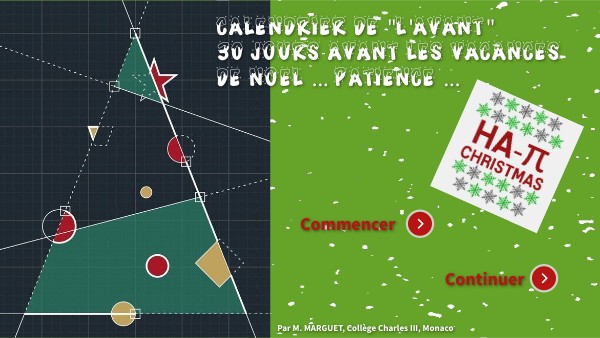 Bienvenue dans ton calendrier de "l'Avant". Ici tu trouveras une case pour chaque jour jusqu'aux vacances ! Le but est de découvrir quelques petites choses amusantes sur les mathématiques en attendant les cadeaux et les vacances !Pas de notation, juste des petites anecdotes à raconter au coin du feu ...