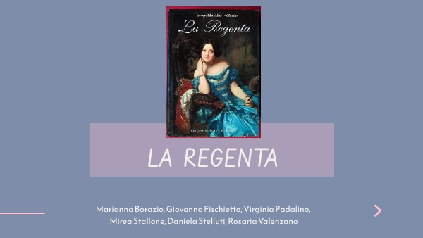La "Regenta"narra la historia de un adulterio. La protagonista es Ana Ozores , casada con don Víctor Quintanar,es decir el antiguo regente de la ciudad de Vetusta(Oviedo). Él es un hombre mucho mayor que ella y la ama como si fuese su padre.No obstante ella se siente abandonada y sin tener la posibilidad de hacer hijos,por consiguiente ella se refugia en el misticismo,empujada por el Magistral don Fermín,que empieza a sentir un amor inconfesado por la mujer. Por otro lado Ana se enamora de don Alvaro Mesía,un donjuán banal,de manera que su marido muere durante el duelo al que él había retado al amante de su esposa. Este último huye a Madrid dejando la Regenta sola marginada por el pueblo.