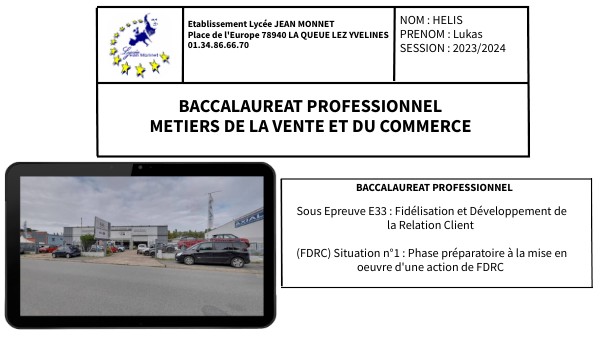 Sous Epreuve E33 : Fidélisation et Développement de la Relation Client (FDRC) Situation n°1 : Phase préparatoire à la mise en oeuvre d'une action de FDRC